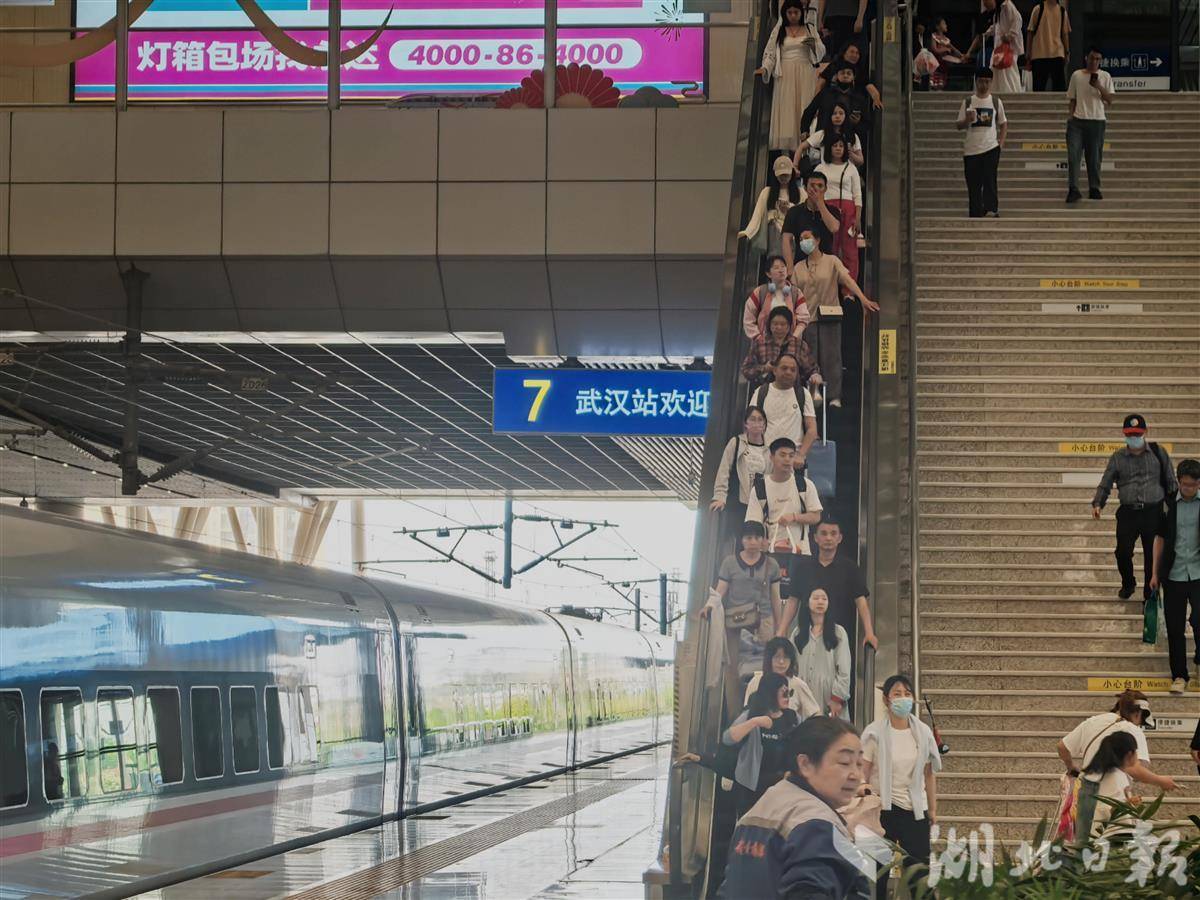 “五一”期间,武汉火车站客流升至日常客流的2倍。其中,5月1日,进出武汉火车站的客流更是合计达到33.5万人次,刷新历史记录。高峰时段,平均1.5分钟开出一趟列车。